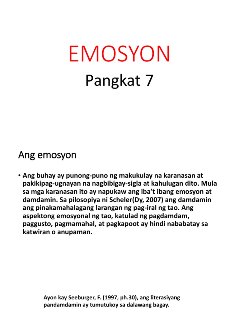 Kulang nga raw kasi sa talino. Kamalayan sa sarili Ito ay malinaw na pagkilala at pagsuri sa mga emosyon at nararamdaman ng isang tao. Pag-aralan ang mga kakayahan at kilos na nagpapakita ng pagmamahal 5.